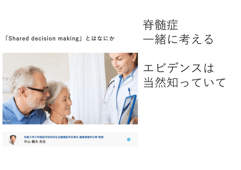 - そもそもShared decision makingが最も必要なのは頚椎症性脊髄症のような場合じゃねえ?