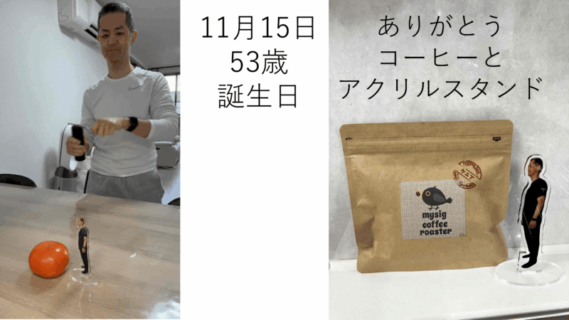 誕生日プレゼントにアクリルスタンドとコーヒー豆、センスいい! ありがとう。