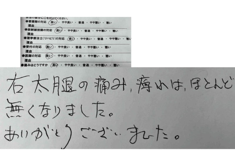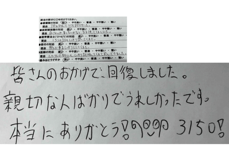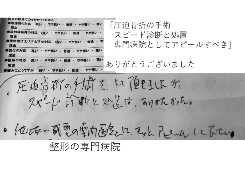 この様なアンケートは本当にありがたい。これ一つでもあればクリニック存在の意味は十分ありますね。