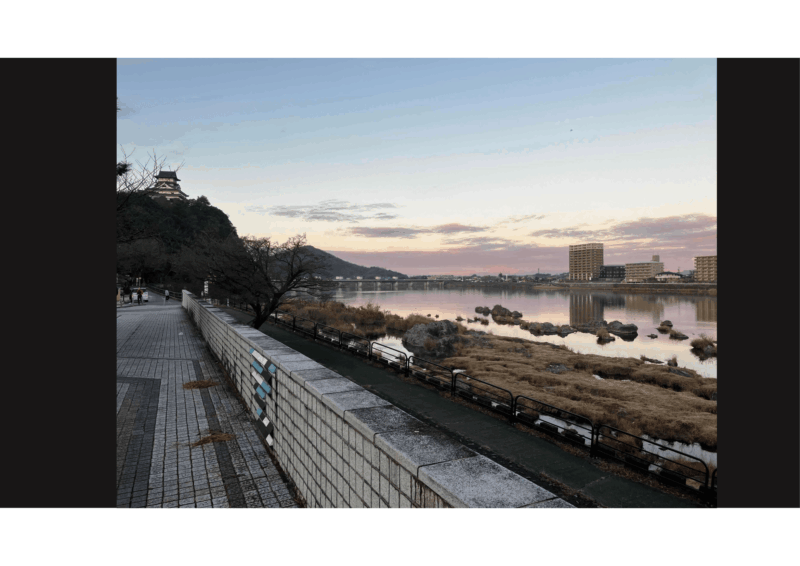 犬山城下市場に戻りますが、そこで以前には見なかった絵描きさん。馬の絵を描いたカレンダーに一言書き加えてオリジナルと作っては? とのこと。いいけど、一言って? ふーん、少し市場歩いて考えます、と。コーヒー買って木曽川眺めながらじっくり考えました。本当にここの木曽川は綺麗なんです。