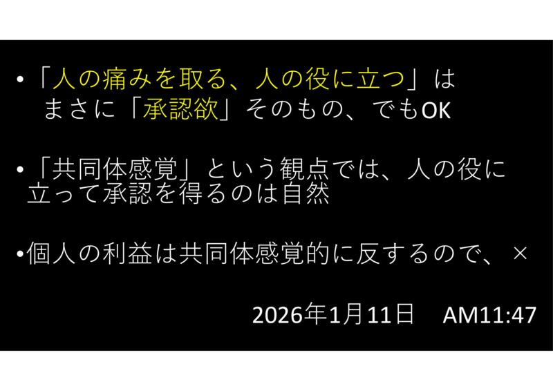 「共同体感覚」という観点では、人の役に立って承認を得るのは自然