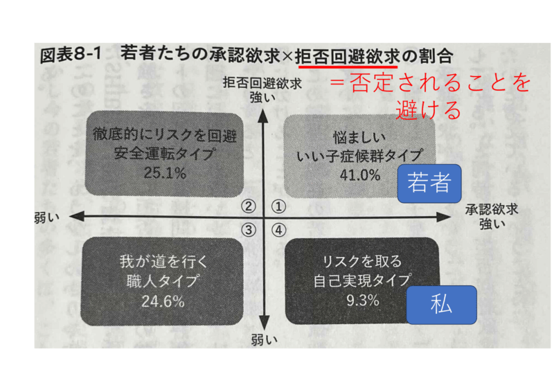 若者は承認欲求はSNSなどでわかるように強いが、拒否回避欲求もとても強い。つまり、周りから浮くような行動は避けたがる。「悩ましいいい子症候群タイプ」が4割と最も多い。