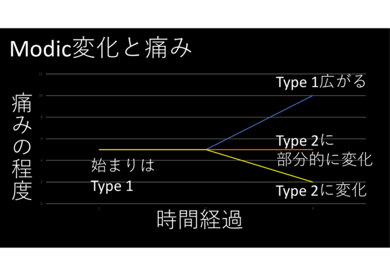 大事なのは、Type 1は腰痛に強く関連する。Type 2への変化は安定化を意味し、痛みも減少する。